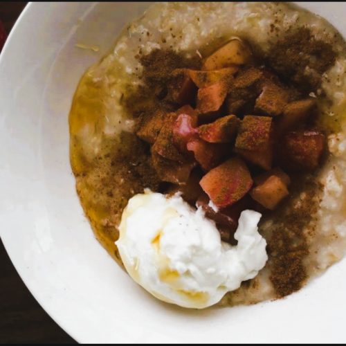 このアップルパイ風ポリッジは、リンゴ、シナモン、そして甘さをプラスするメープルシロップで作った、ビーガンも楽しめるブレックファストです。