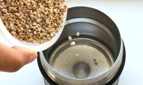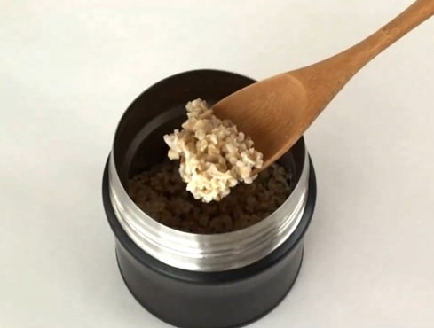 - ステップ1スティールカットオーツを準備する最低でも3時間ぐらい前に、スティールカットオーツと熱湯をスープジャーに入れ、蓋をしてそのままふやかします。
