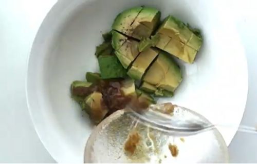 アボカドにたれを加え、軽く混ぜます。