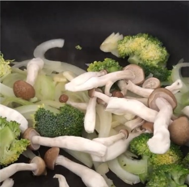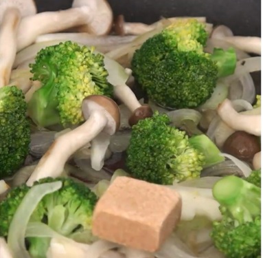 野菜:ここでは、ブロッコリー、玉ねぎ、しめじを使いましたが、好きな野菜を使うことができます。