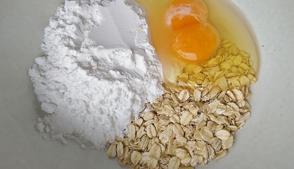 Leave it and cut the garlic chives into 5 cm lengths. While you are cutting the garlic chives, the oatmeal becomes moist.