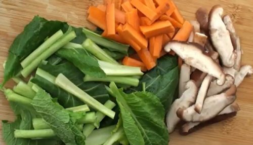 野菜は何でも、白菜やキャベツ、小松菜、ほうれん草、しいたけやしめじなど、お好きなものをチョイスましょう。