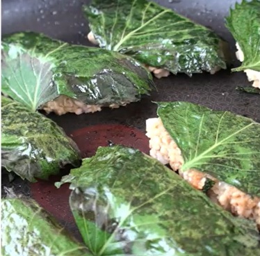 • オートミールの具を8等分に分け、大葉に包みます。油を熱したフライパンに並べ、両面を2分ほど焼きます。
