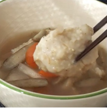 オートミールと米粉で作るすいとんは、もっちり感がアップし、弾力がある食感になります。