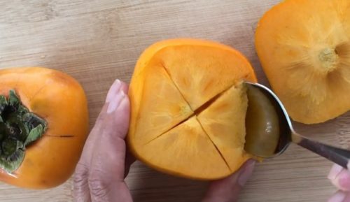 柿:完熟していない種なしの柿のほうがおすすめです。