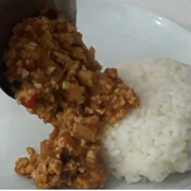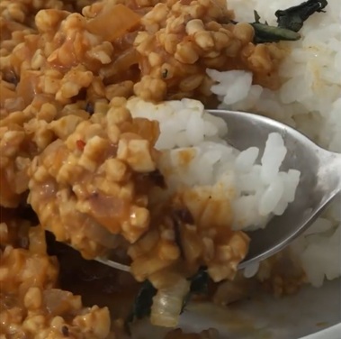 - 器にご飯を盛り、オートミール入りキーマカレーをかけます。