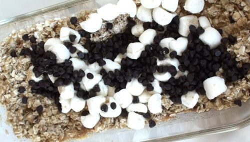 - チョコレートチップとマシュマロを加えてもう一度混ぜます。