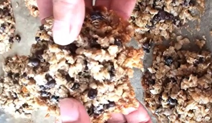 ここでは、オートミールとオーツ粉にマシュマロとチョコを混ぜ合わせて焼き上げました。外はカリカリ、噛みごたえがあってソフトなクッキーに仕上がります。
