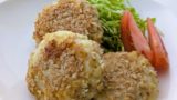 オートミールはグルテンを含まないため、つなぎに豆腐を使います。 にんじんと玉ねぎもたっぷり入り、肉なしでもボリューム満点。
