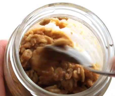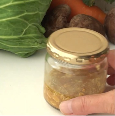 ガラス容器に入れたオートミール(インスタント/クイックオーツ)に、酢と油、味噌などを混ぜ合わせ、冷蔵庫でひと晩寝かせるだけ。オートミールが水分を吸い、やわらかくなり、味噌ドレッシングのできあがます。