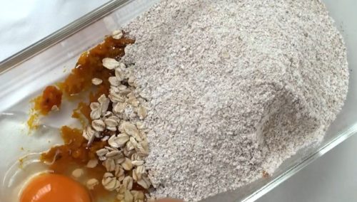 オーツ粉:オートミールを粉砕した粉を使いました。米粉でもOKです。