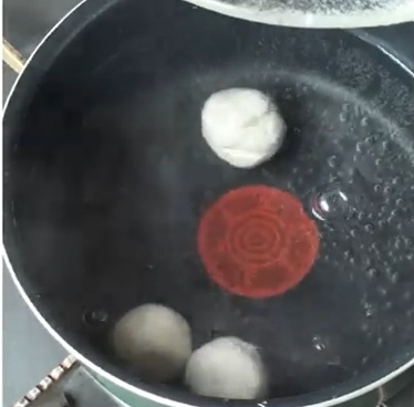 鍋に湯をわかし、だんごを入れて、再び沸騰したら6~7分ゆでます。白玉粉と違い、浮いてこない場合がありますが、ゆで時間は7分ほどです。