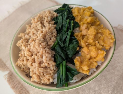 今回は、オートミールをお肉と卵の代わりに使った植物性100%、プラントベースの三色そぼろ丼の作り方です。