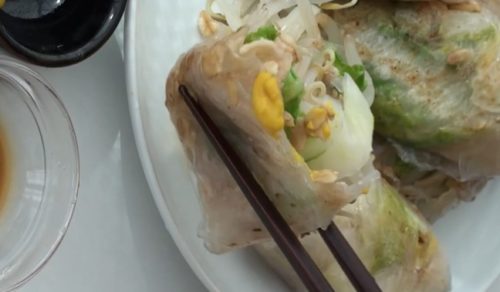 もやしと白菜、ねぎをたっぷり入れた、野菜中心の春巻きです。