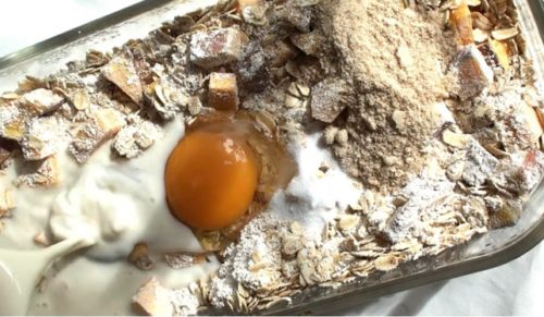 ロールドオーツ:ロールドオーツを使いましたが、クイックオーツでもできます。