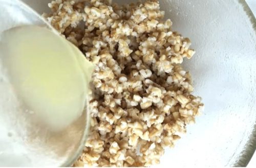 スティールカットオーツにレモン汁と塩こしょうを混ぜます。