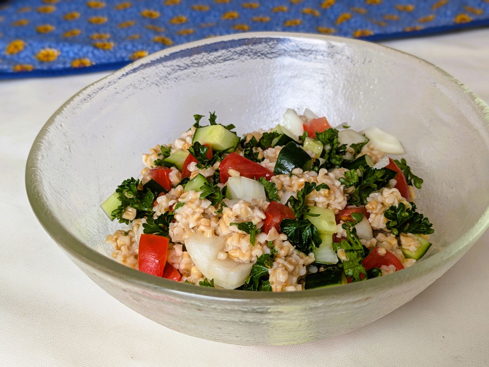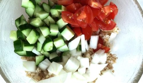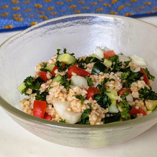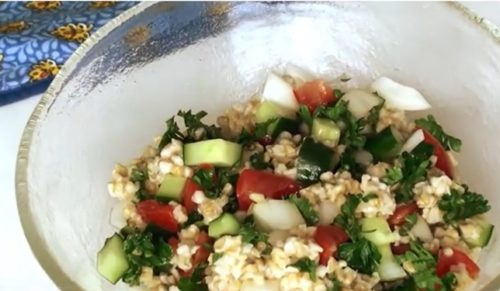 オートミールを使った、フランスではおなじみのサラダ、タブレの作り方です。スムールというパスタの代わりに、スティールカットオーツを使います。きゅうりやトマト、玉ねぎを混ぜるだけの簡単レシピ。食物繊維が豊富で栄養バランスのいいサラダです。