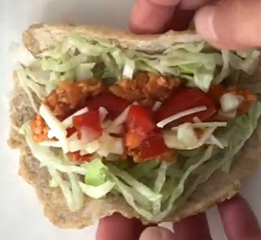 肉の代わりにオートミールを使った、プラントベースのタコスミートをはさみました。