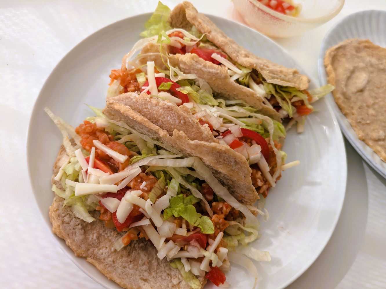 オートミールで作る世界の料理、今回は、メキシコ料理のタコスです。