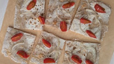 オートミールのフレンチピザ|ヘルシーなタルトフランベ