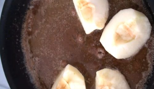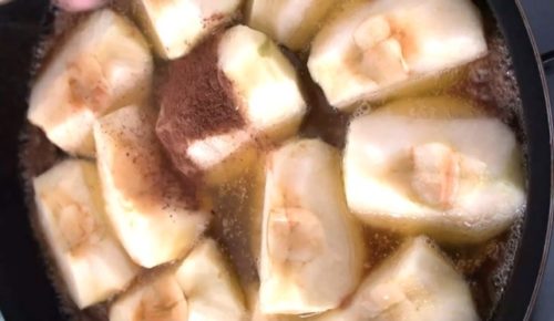 - 鍋にりんごを入れ、シナモンを加え、キャラメリゼするまで煮ます。火を止めて、鍋にいれたまま冷まします。