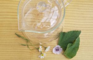 マシュマロウとジャーマンカモミールの足浴は、これらのハーブで作ったインフュージョン(浸剤)を使います。