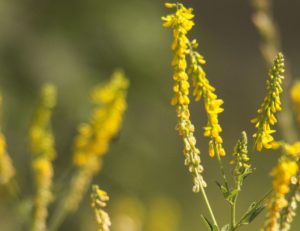 属名の「Melilotus」 はギリシャ語の「meli(蜂蜜)」と「lotos(広義のクローバー)」が由来で、実際、鮮やかな黄色い花は、ミツバチが好きそうなほのかにバニラの香りがします。