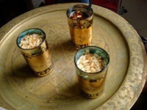 写真はチュニジアのミントティーで、煎った松の実を浮かんでいます。