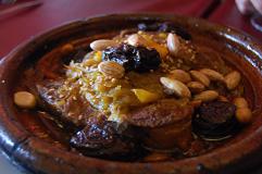 写真は、最も典型的な料理、羊肉とプラムのタジンです。