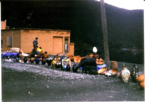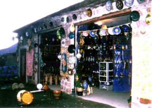 また、マラケシュ南部のウリカ谷の道路沿いにある土産屋にも、色鮮やかな陶器がところ狭しと並んでいました。