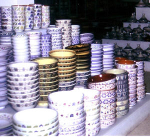 ポット、取っ手と注ぎ口のついた壷、スープ皿、クスクス用の皿、タジン鍋といった食器で、特に、サレのタジン鍋が有名です。